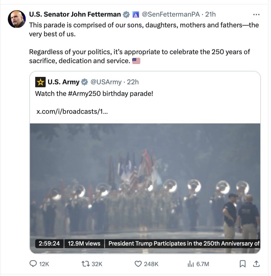 Then again, their ten-year temper tantrum is wearing thin. Juxtaposed against a president who celebrated the army’s 250th anniversary, and posted this on the White House YouTube, I wonder if the No Kings protest wasn’t more of a repellent.