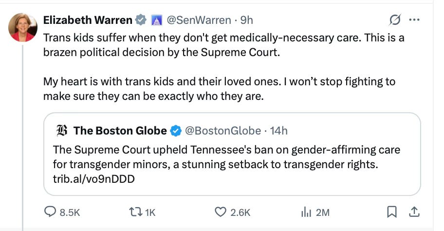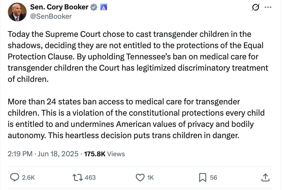 Because Hillary Clinton lost, we did not get control of the court. And thank God for that. Because if we had, there is no way the bill from Tennessee to ban “gender affirming care” would have been upheld.