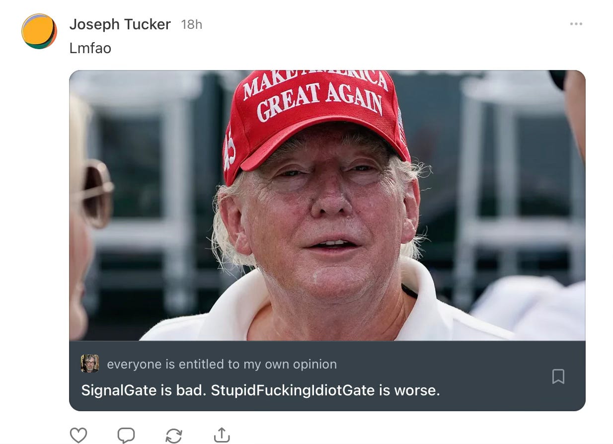 The question you should be asking every single day of your life, Joseph, isn’t why someone like me is on Substack, but rather, how is it you could have so throughly and completely failed the American people that they voted for Trump again.