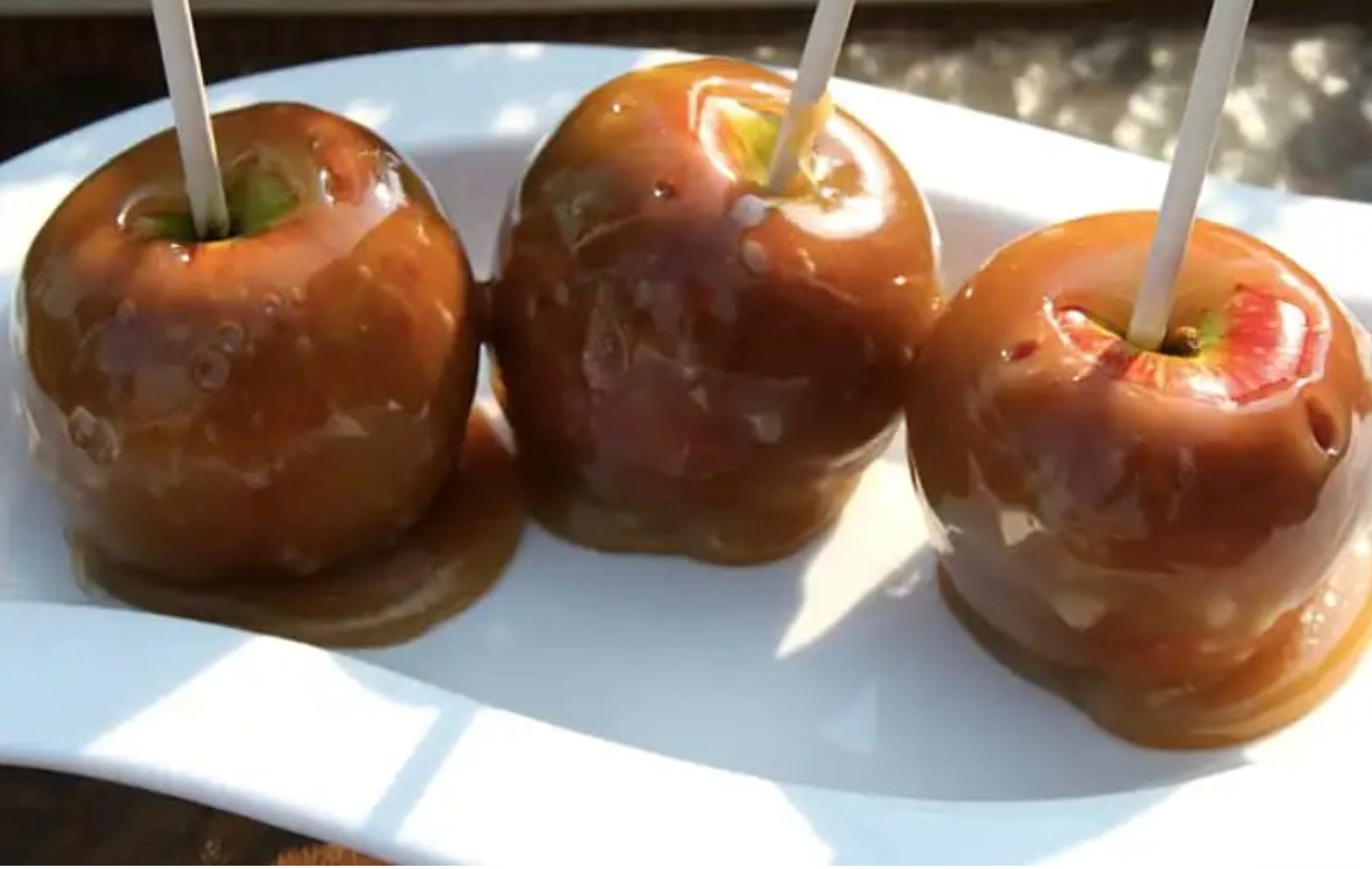 All the kids got homemade candy, like Rice Krispie squares or apples. Then, the whole razor blade thing happened, and only store-bought candy was allowed. Janet decided to make her treats for the kids anyway, with responsibly sourced caramel and gluten-free apples.