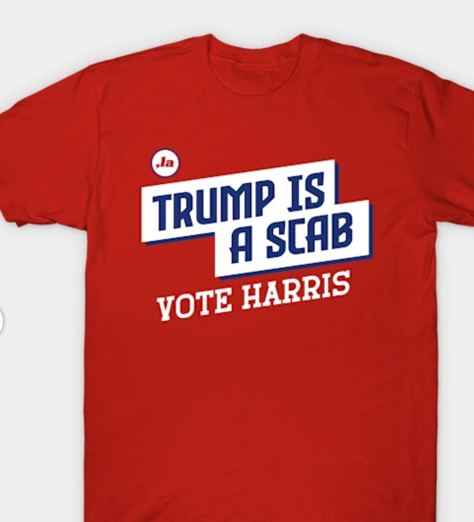 Janet had a choice to make. Would she wear the T-shirt that said, “What’s so funny about peace, love, and understanding?” or would she put on the one that said, “Trump is a scab.” It wasn’t a hard choice. The election was in a week.