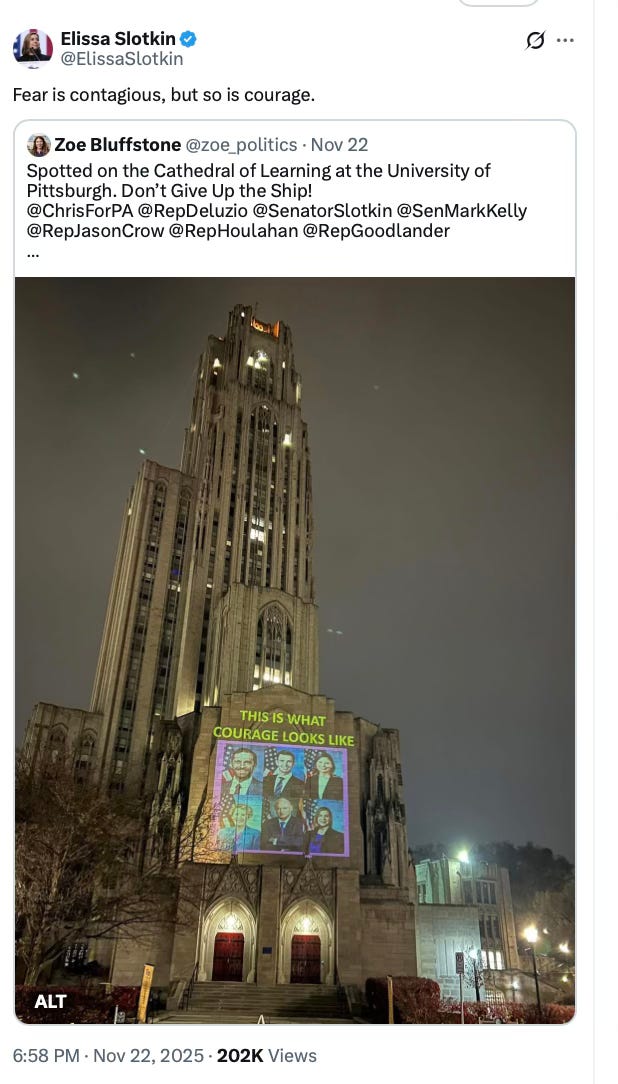 You were never the resistance, Ms. Slotkin. You were always the empire. You just didn’t like it that you were defeated not once, but twice. So rather than look at your own failures to win, you deflect, you lie, you cosplay. You seem perfectly willing to put members of the military at risk and create just the chaos you need to make it seem, yet again, like America is about to collapse. Shame on you. You are no patriot.