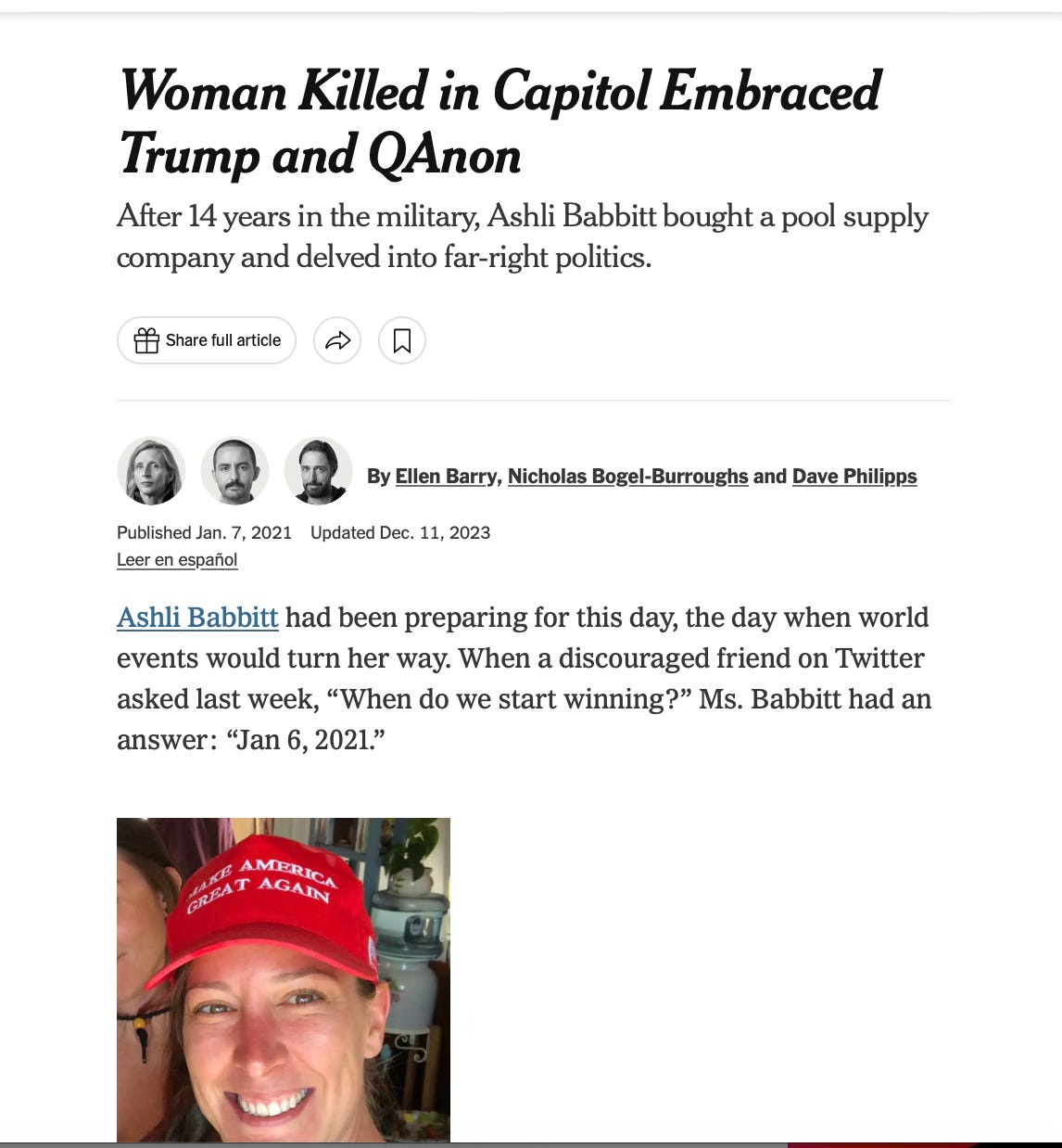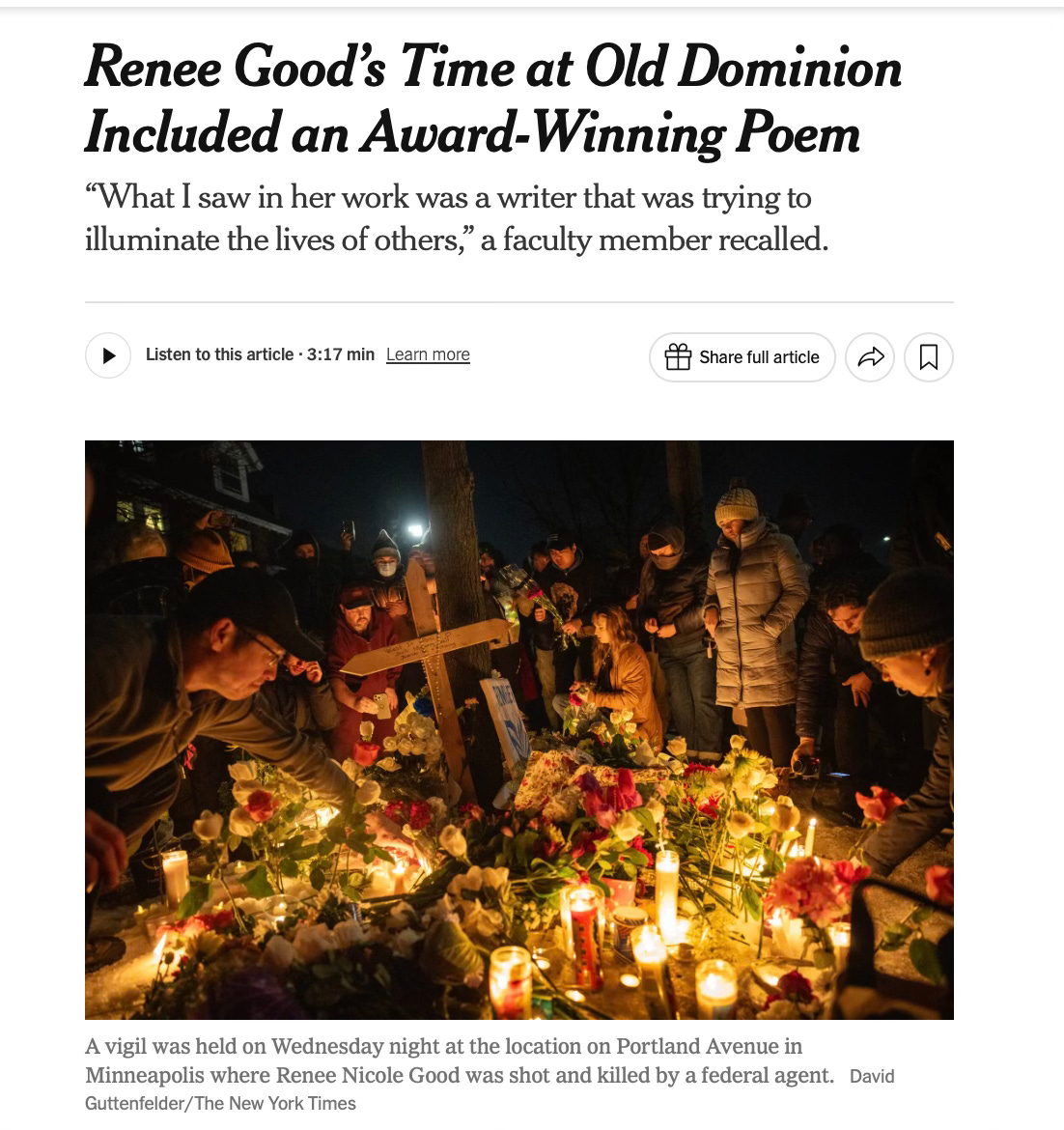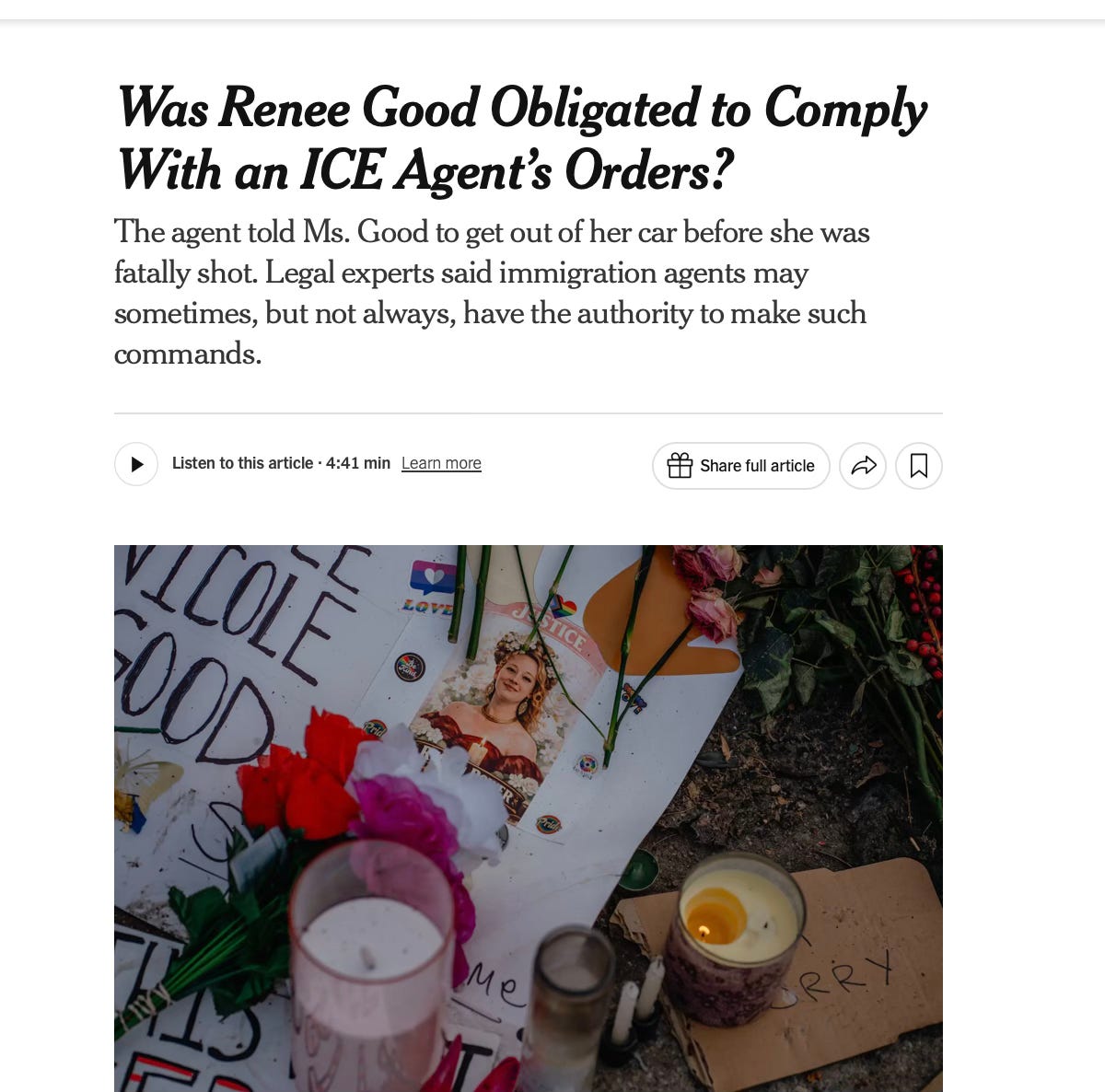 At the New York Times, you want the tragic death of Renee Good to be the symbol for protesters dying at the hands of the regime, but, as usual, it is not the truth. That won’t stop you from perpetuating the mass delusion and injecting it into the veins of your already unhinged readership.