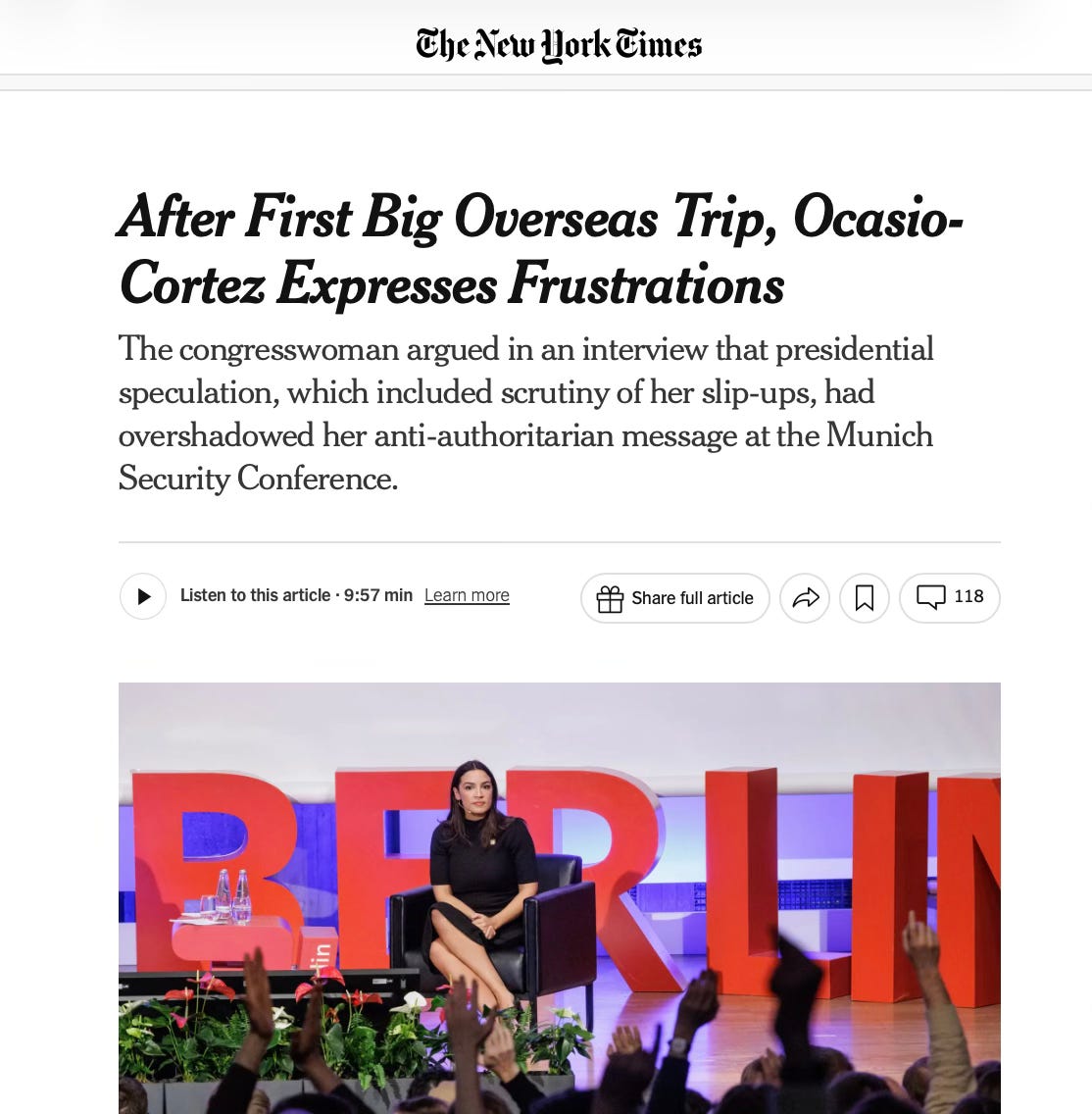 You know things must have been bad for Alexandria Ocasio-Cortez in Munich for the New York Times to attempt some damage control.