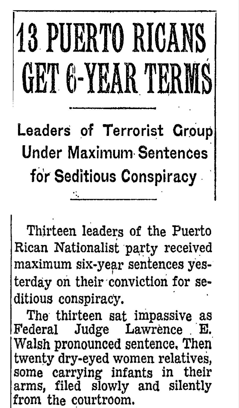 When Communist revolutionaries shot up the Capitol in 1954 they were charged with “seditious conspiracy” for fighting for Puerto Rico’s independence. The sentencing read, “this case makes it clear that these people and their followers have nothing but contempt for our laws, our courts, and our public officials.”