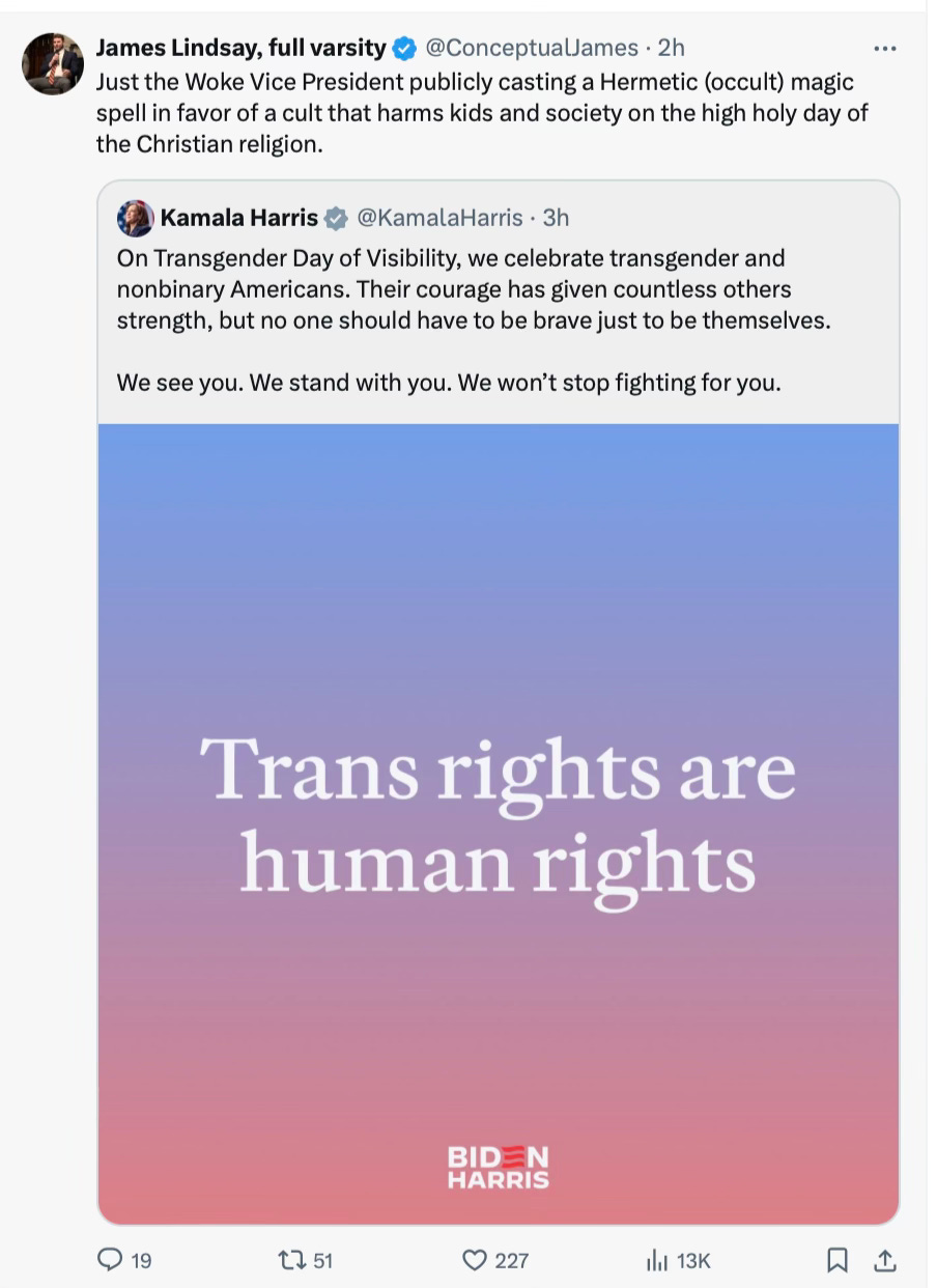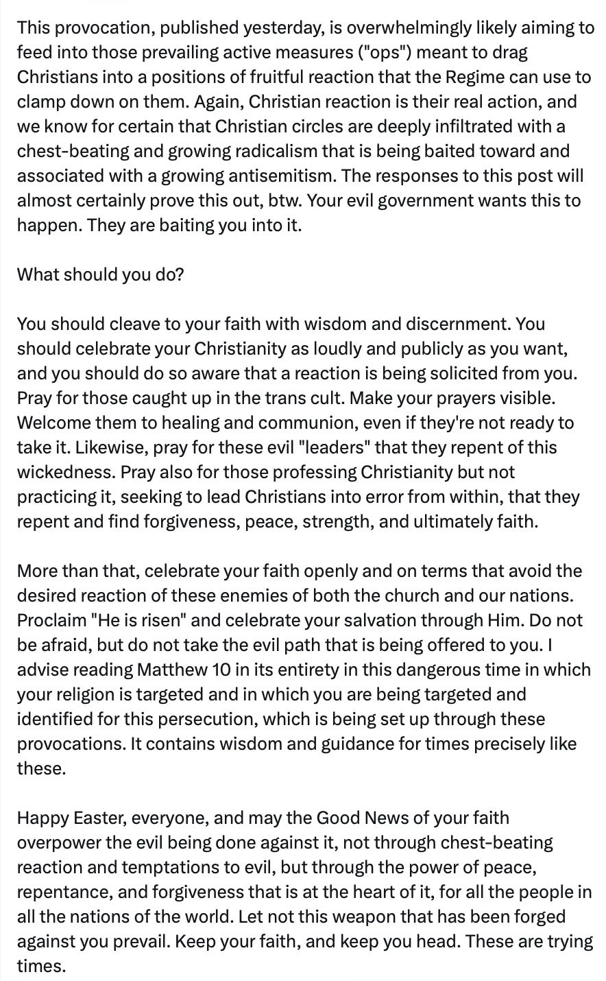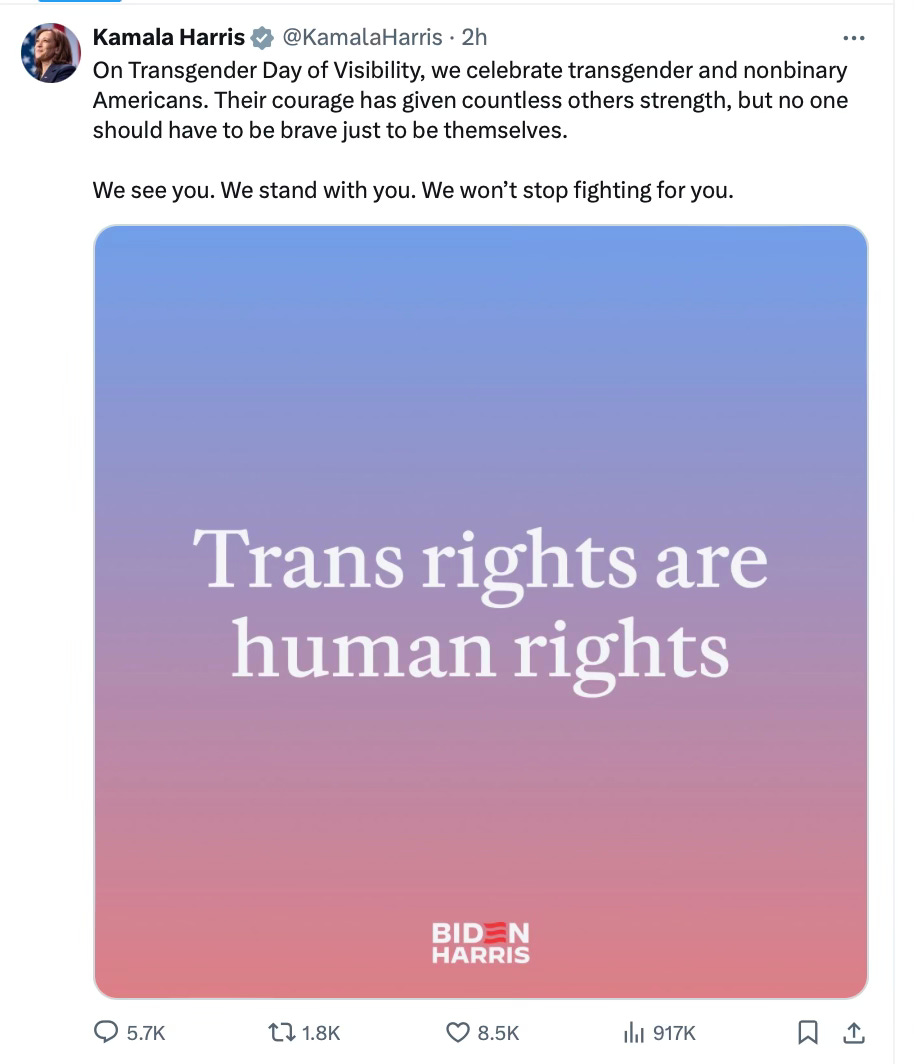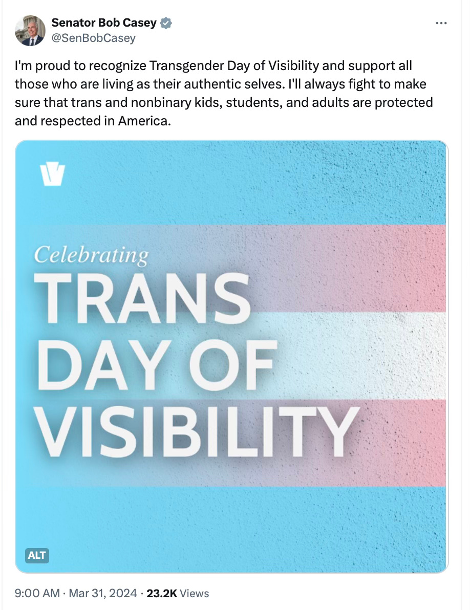 And there it was, Transgender Day of Visibility, which always falls on March 31. Biden could have made it official any time in the past four years, yet he chose this day because it collides with Easter Sunday.