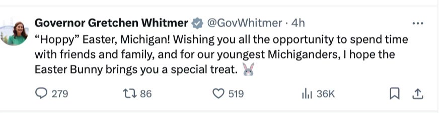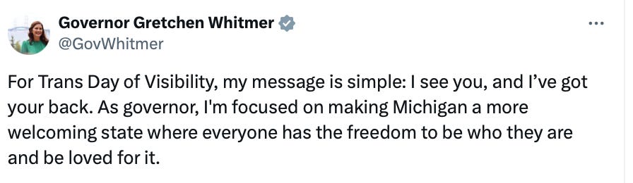Whitmer, 2024: “There is nothing more American than living your life the way YOU want to live it.”