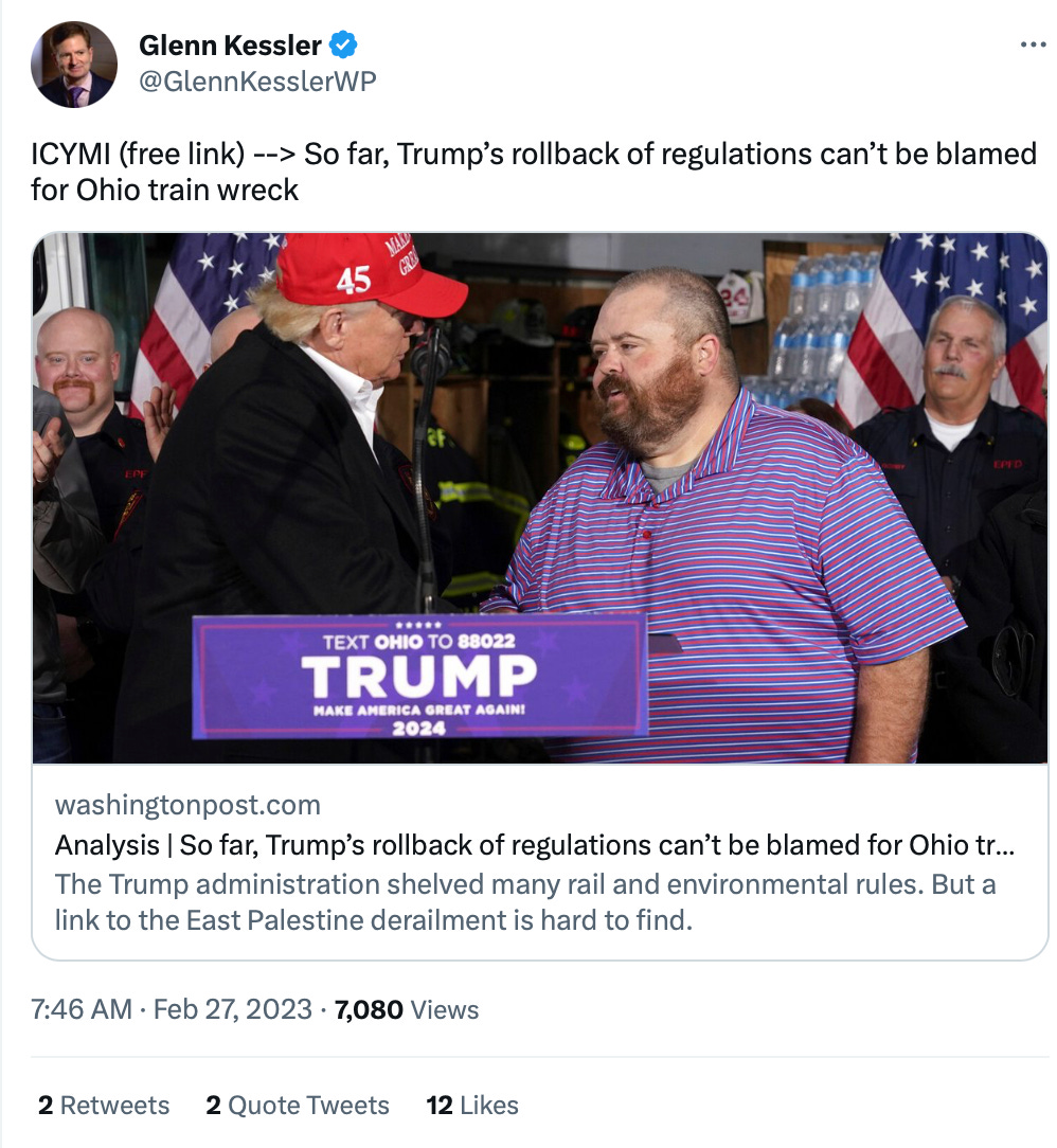 The person who gets to say “I told you so” is Trump. He went to East Palestine and he knew exactly what to do and how to do it, by doing what he always does with MAGA. He makes them feel seen. He tells them they matter.