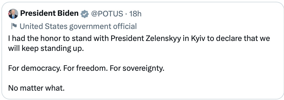 That’s why on President’s Day Joe Biden went to Ukraine, not to East Palestine, Ohio. It’s the same old story. No American president wants to be stuck on the losing end of any war. And they’ll often escalate, and stay bogged down to save themselves the humiliation of defeat. No matter what.