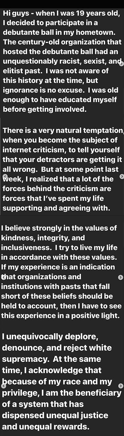 So in case you are wondering what the game is - this is the game. The idea is that she is being used as an example to continue bringing to light the racism of our past. They have figured out that the only way to do damage control is not to say “I have nothing to apologize for.” They can’t say that, even though it’s true, unless you are offering a blanket apology of being a white person who exists in the world.