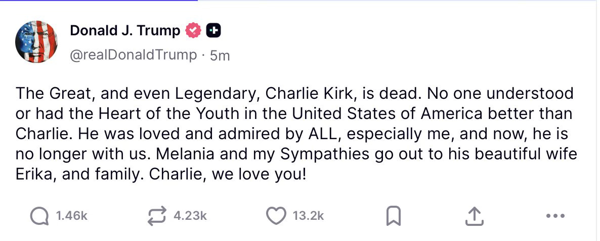 There were never hundreds of videos on TikTok begging someone to “Just do it” - meaning, to kill Trump. All of those psychotic people who pretended Trump died and then celebrated it. Charlie Kirk was hated by them, too. He was hated for his views on the traditional family, on the transgender madness, and lately, for his criticism of Israel. He had a lot of enemies. What he didn’t have was necessary protection.