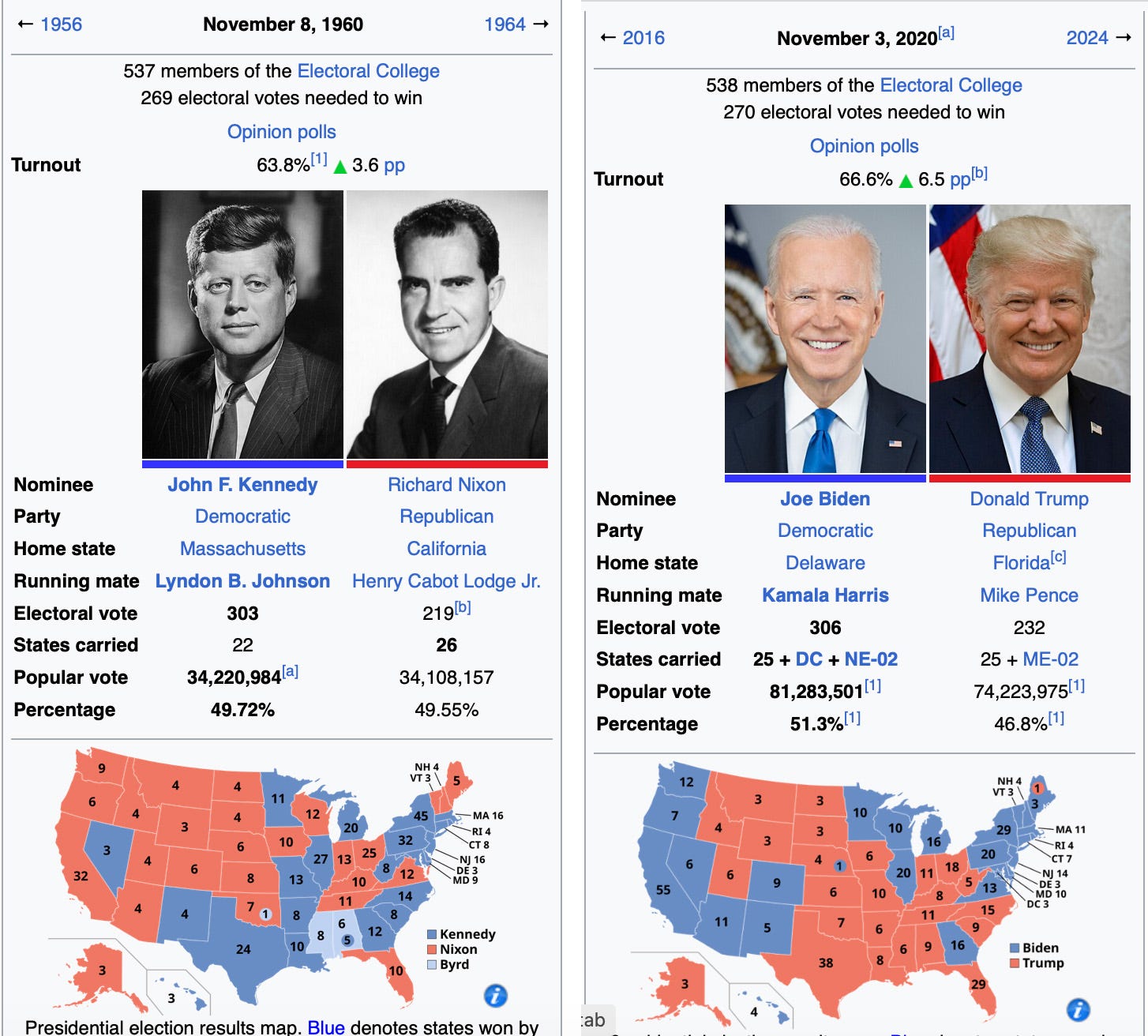 The difference in votes between Kennedy and Nixon proves how close the election was. But it never made sense to me that Biden would win by such a large margin and also lose Ohio, Iowa, and Florida. Unless, of course, they’d built a system that was too big to fail and had collected enough ballots long before Election Day.