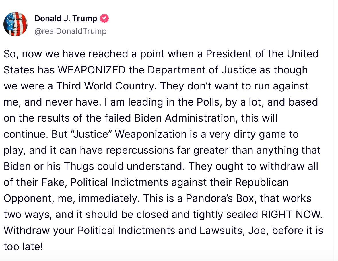 It’s in keeping with what’s going on in New York’s Engoron court where he’s trying to strip him of his business license and force him to sell all his businesses!