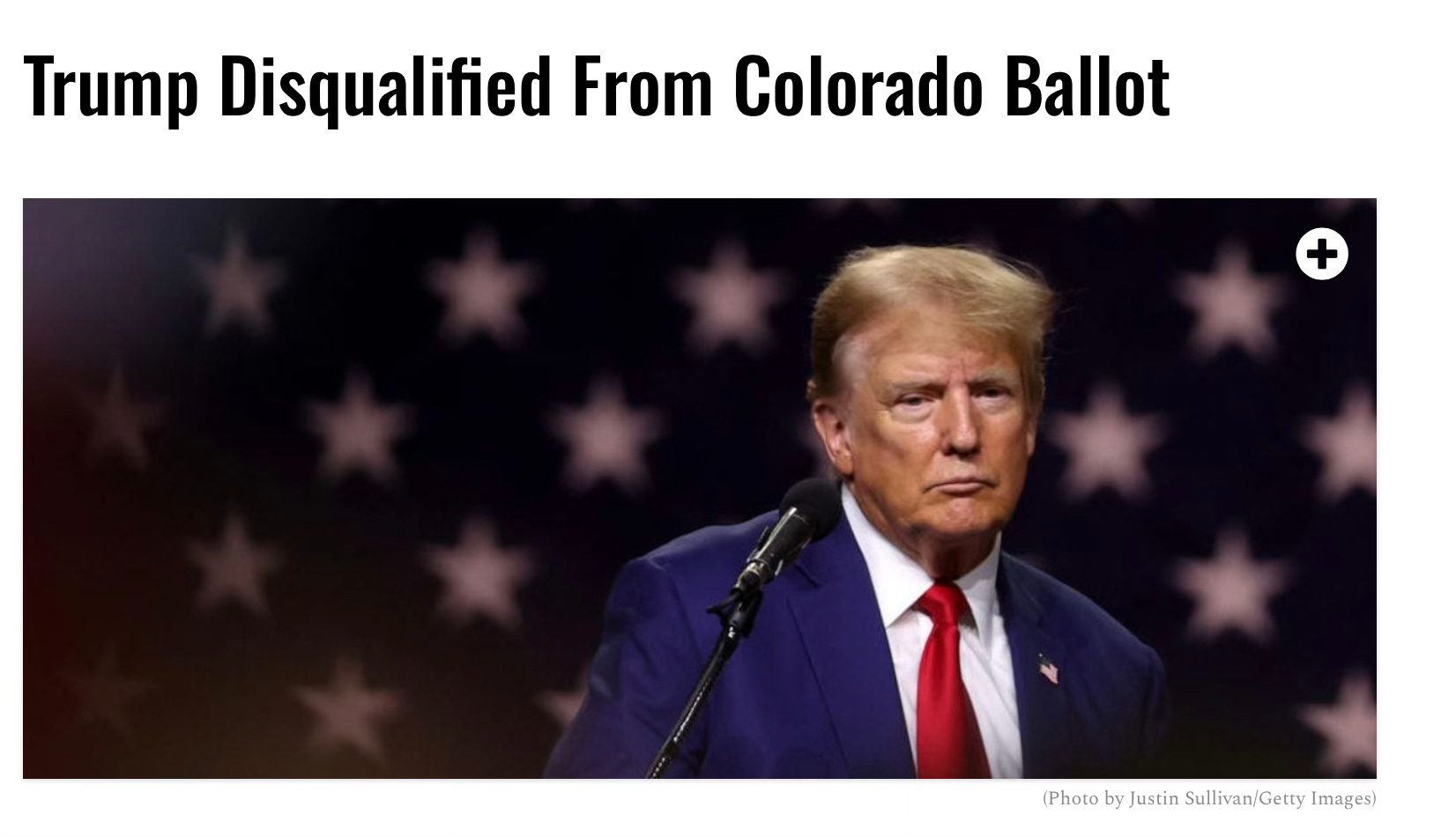 Former President Donald Trump has been disqualified from the Colorado ballot for the 2024 election over the 14th Amendment’s “insurrectionist” ban.
