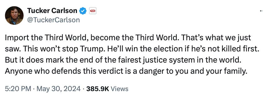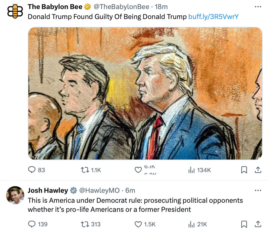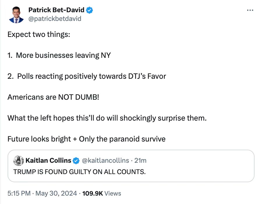 There was never any chance this Show Trial would not find Trump guilty. But what a true low point in this country’s history. He will appeal. Trump 2024.