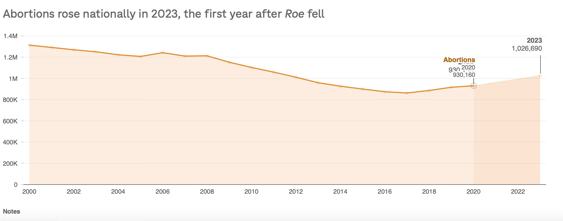 To be precise, researchers estimate there were 1,026,700 abortions in 2023. "That's the highest number in over a decade, the first time there have been over a million abortions provided in the U.S. formal health care system since 2012," explains Isaac Maddow-Zimet, a data scientist with Guttmacher.