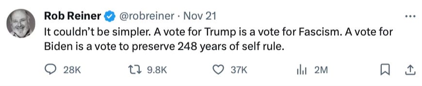 JOE: I’ve never been more alarmed about an election in my life. How is it so many people want to vote for Trump? He’s a criminal! A felon! A fascist dictator!
