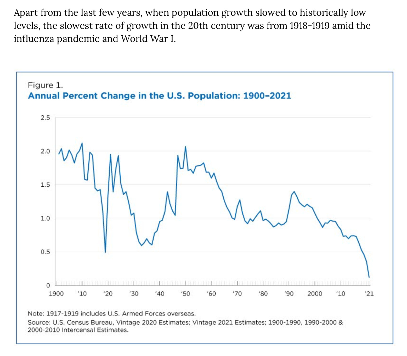 Fertility rates are down across the board. The Census announced that in 2021, US percentage change in population was its lowest since its founding.