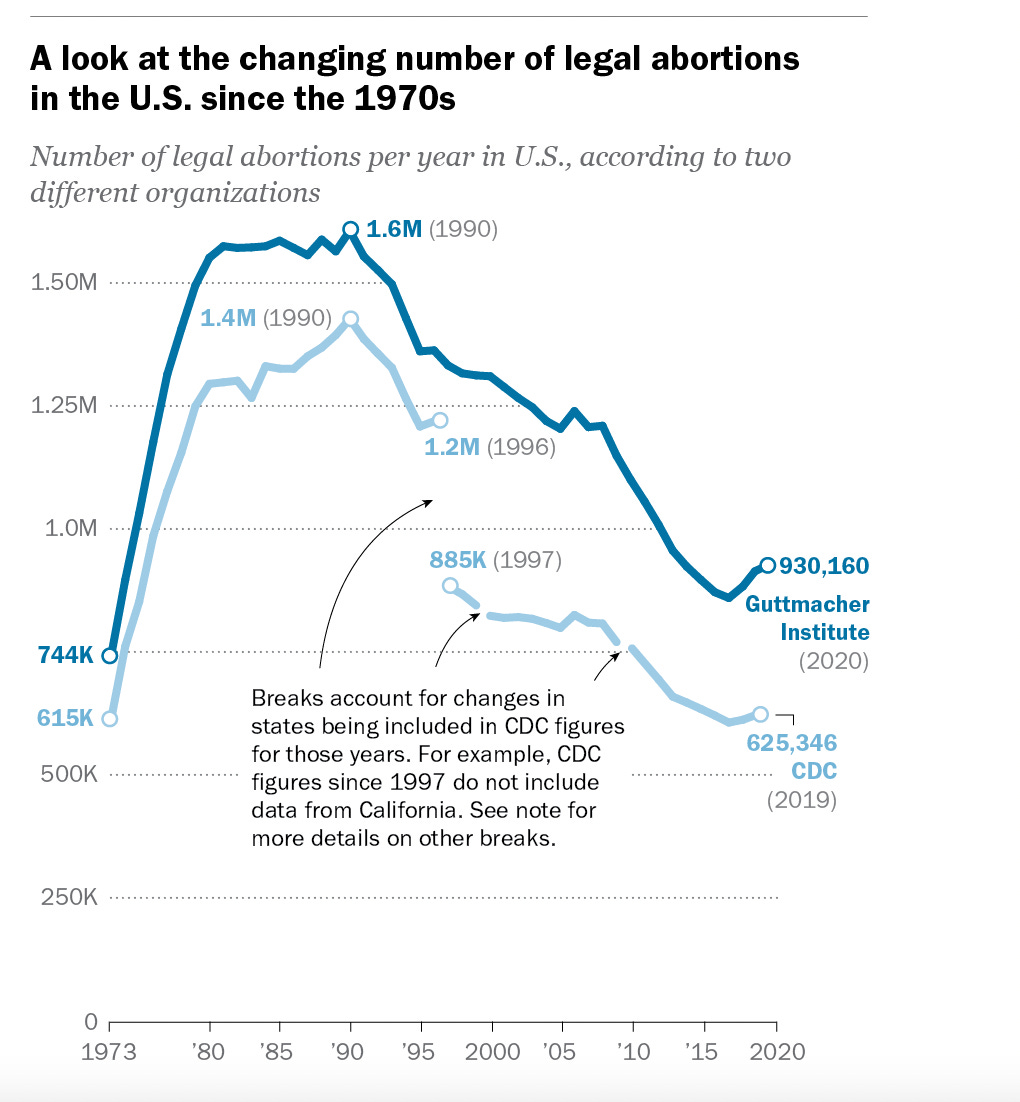 Abortions are down significantly since the era when I came of age. That should be another conversation we have. Pew research says: