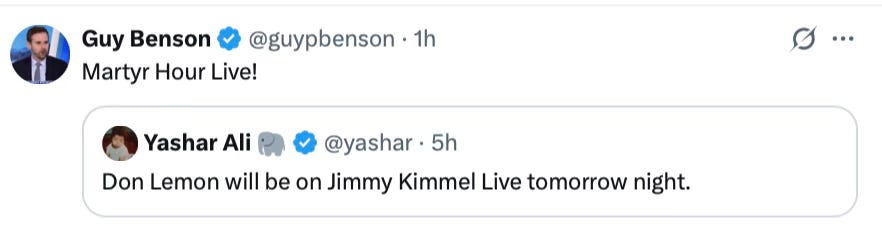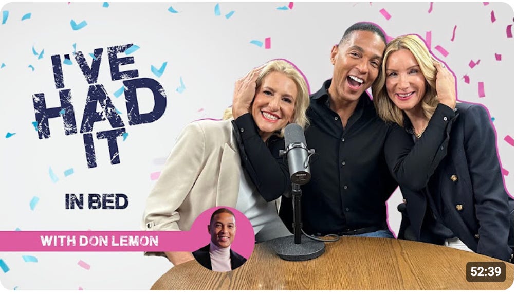 Before this, Don Lemon’s YouTube channel was languishing in obscurity, with only Jennifer Welch and JoJo from Jerz wine moms tuning in. Now, he, like Jimmy Kimmel, has been transformed into a free speech martyr.