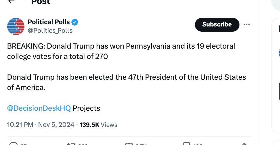 Donald Trump is the 47th President of the United StatesFox just called itSasha StoneNov 06, 202443117421ShareIt’s done! Wow! I can’t believe it!!PreviousNext
