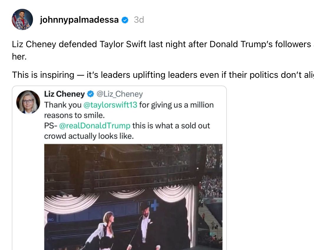 The Democrats try every day to drive a wedge between the Swiftie fandom and Trump. They want nothing more than to ensure every young girl growing up in America knows just one thing about the GOP: that they were mean to Taylor Swift.