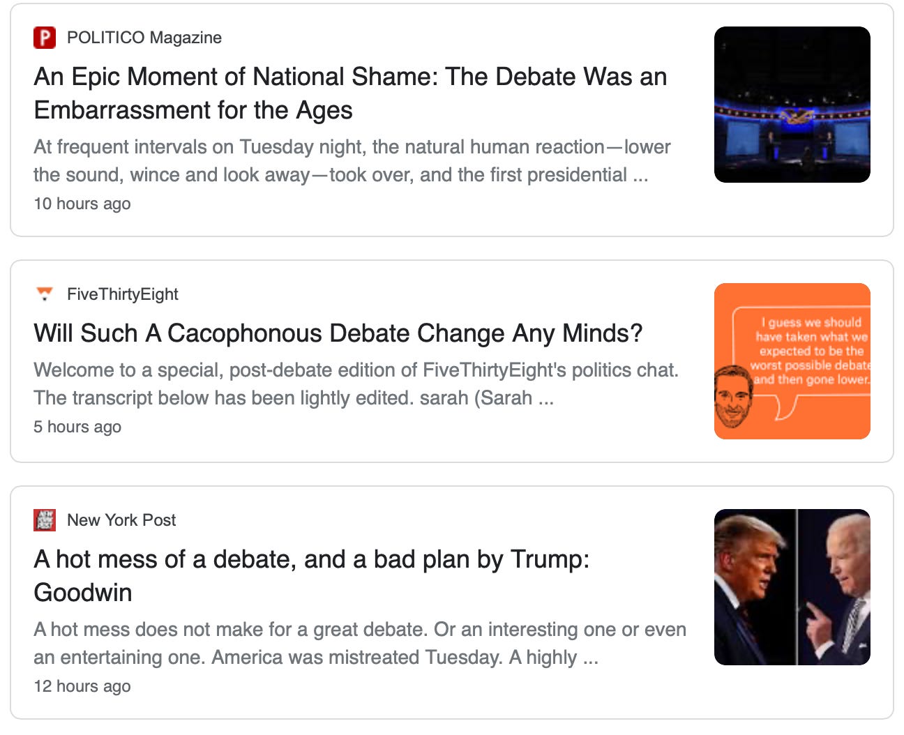 Of course the majority of Americans probably don’t watch the show. They are worried about putting their lives back together and having a future. They’ve long since decided whom they’re voting for and no debate is going to change their minds. But the Trump show is big business and many enterprises depend on it and to make it churn they need audience engagement.