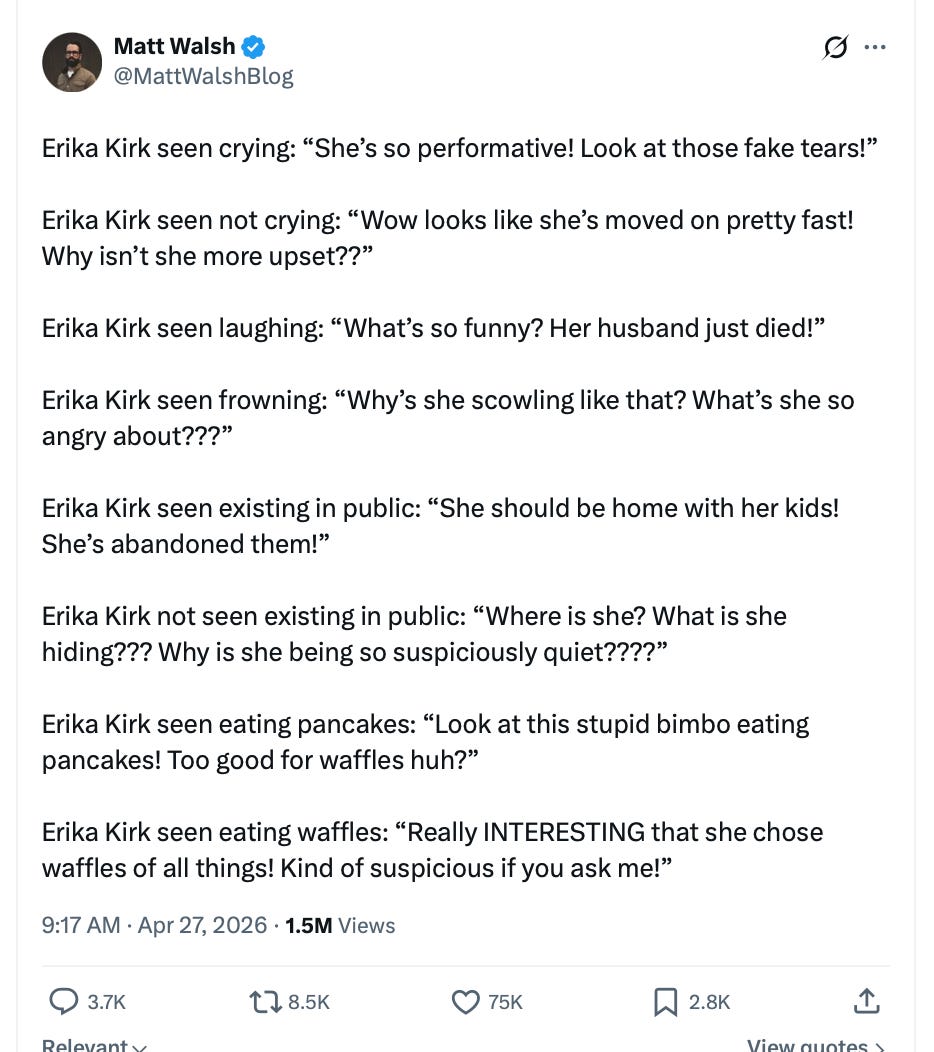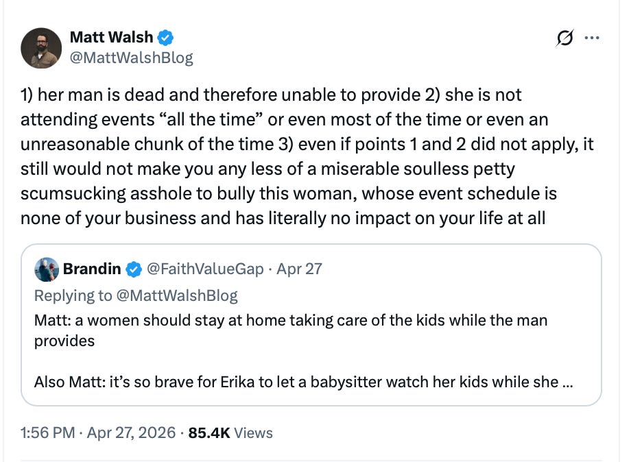 And by the way, Erika Kirk is only getting stronger. Her enemies can suck it.