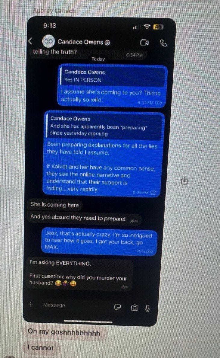Candace shot back and claimed she never said Erika murdered her husband, but that was very quickly debunked by Laura Loomer in a text message: