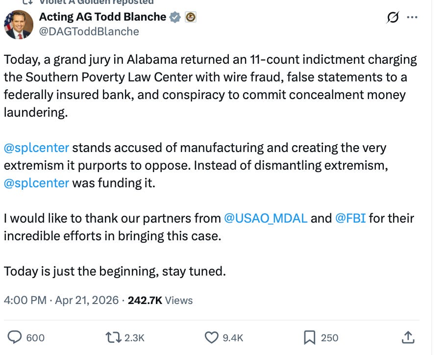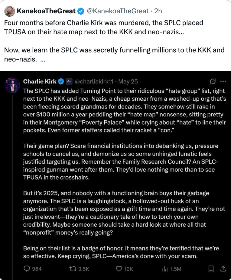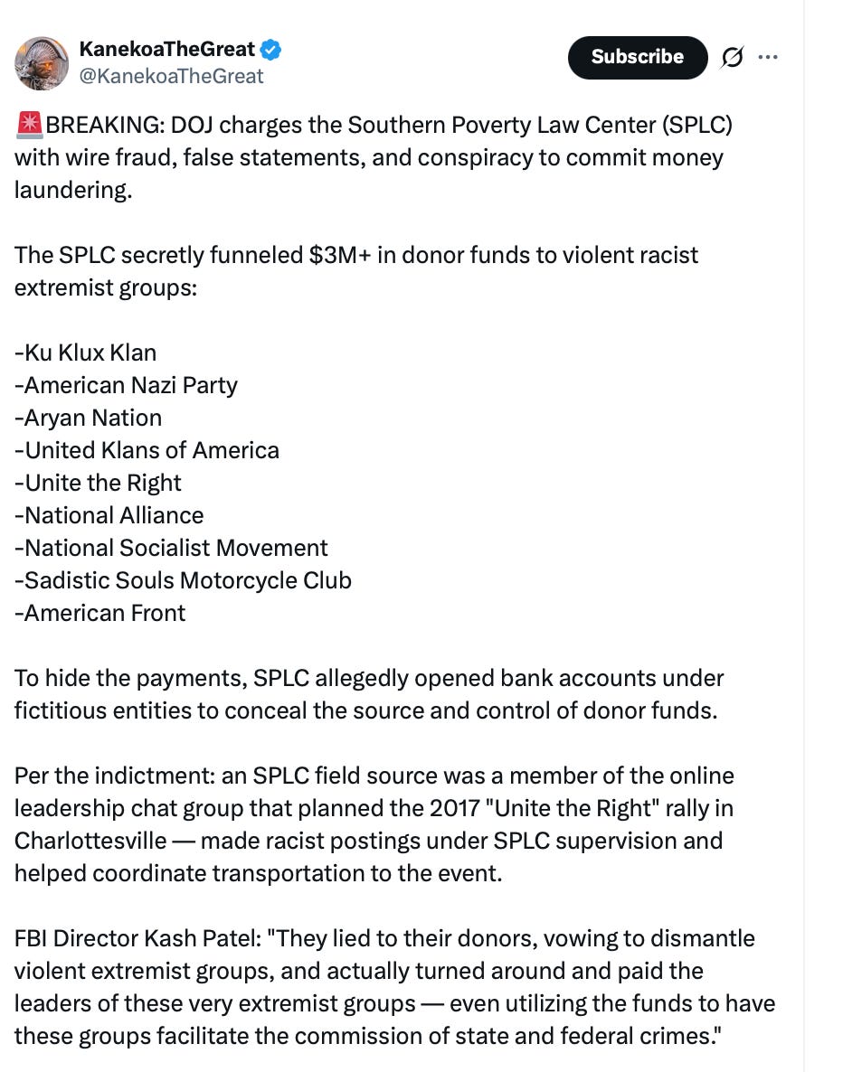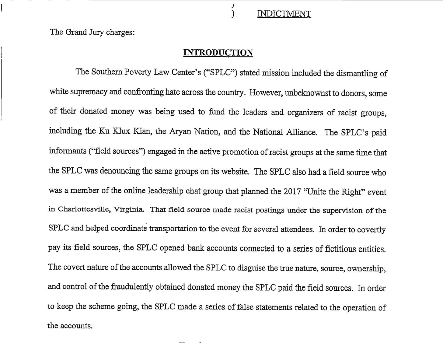 SPLC is so far left, the only people who would fund them were leftist elites or racists with an abundance of white hate or delusions of white guilt. So glad to hear this hate group has been indicted.