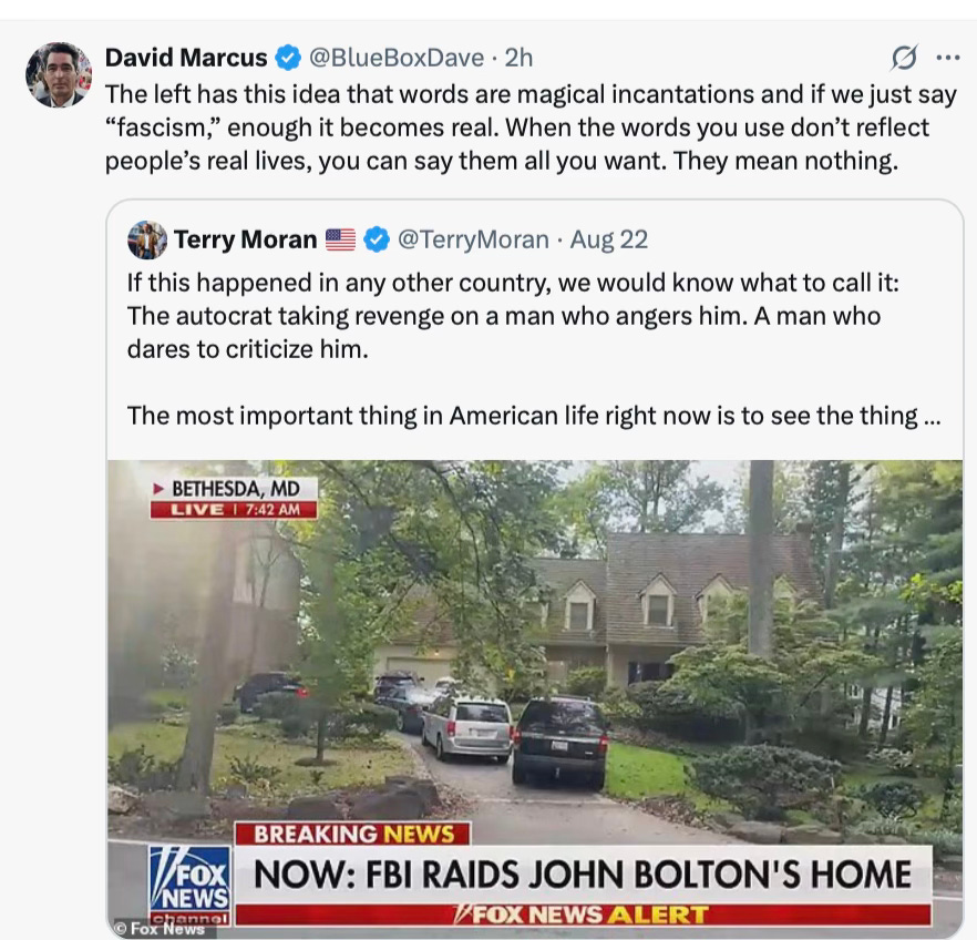 We get to say what kind of lawfare amounts to fascism. Terry Moran gets to say.