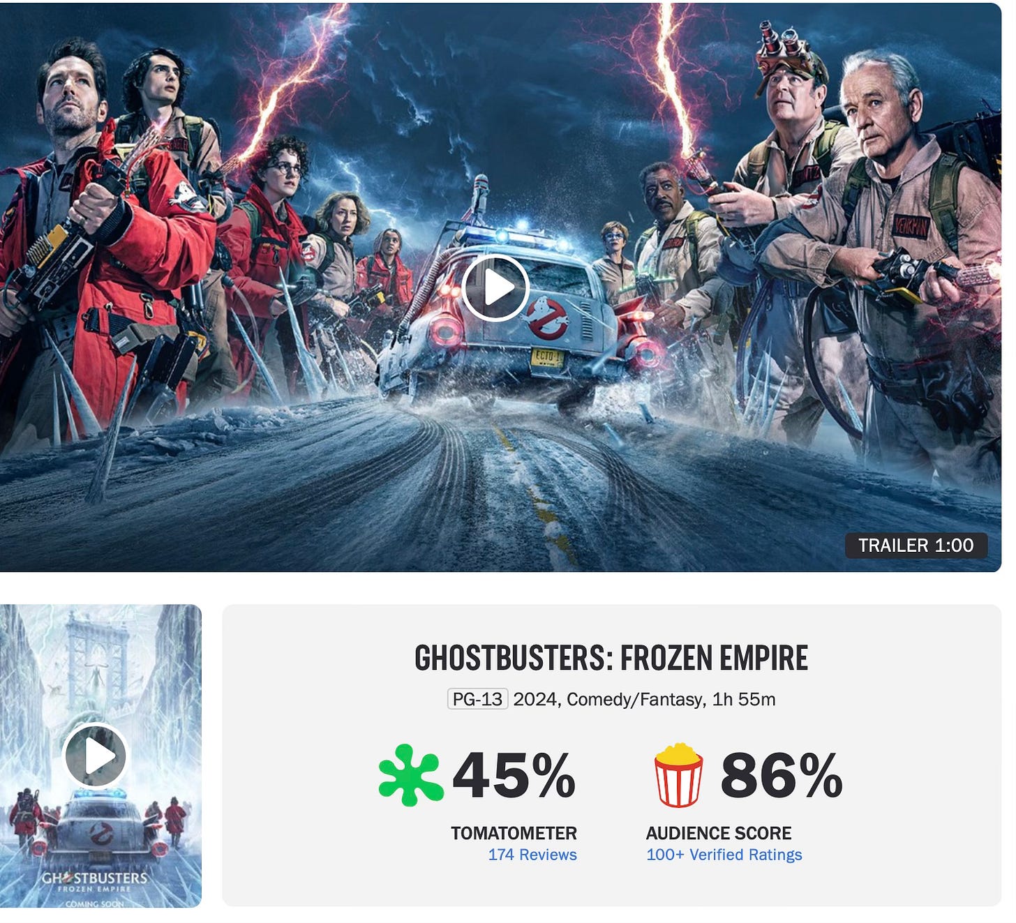 The new Ghostbusters movies has a massive split between the critics and the audience, which can sometimes mean the movie is actually good.