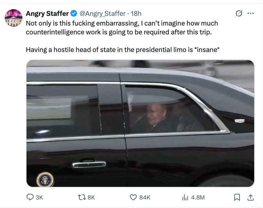 He came at Putin in a way that would flatter him because he figured that was his best shot, as opposed to mocking him publicly and making him an enemy and thus, having no leverage. Are these people stupid or are they just playing stupid on the internet?