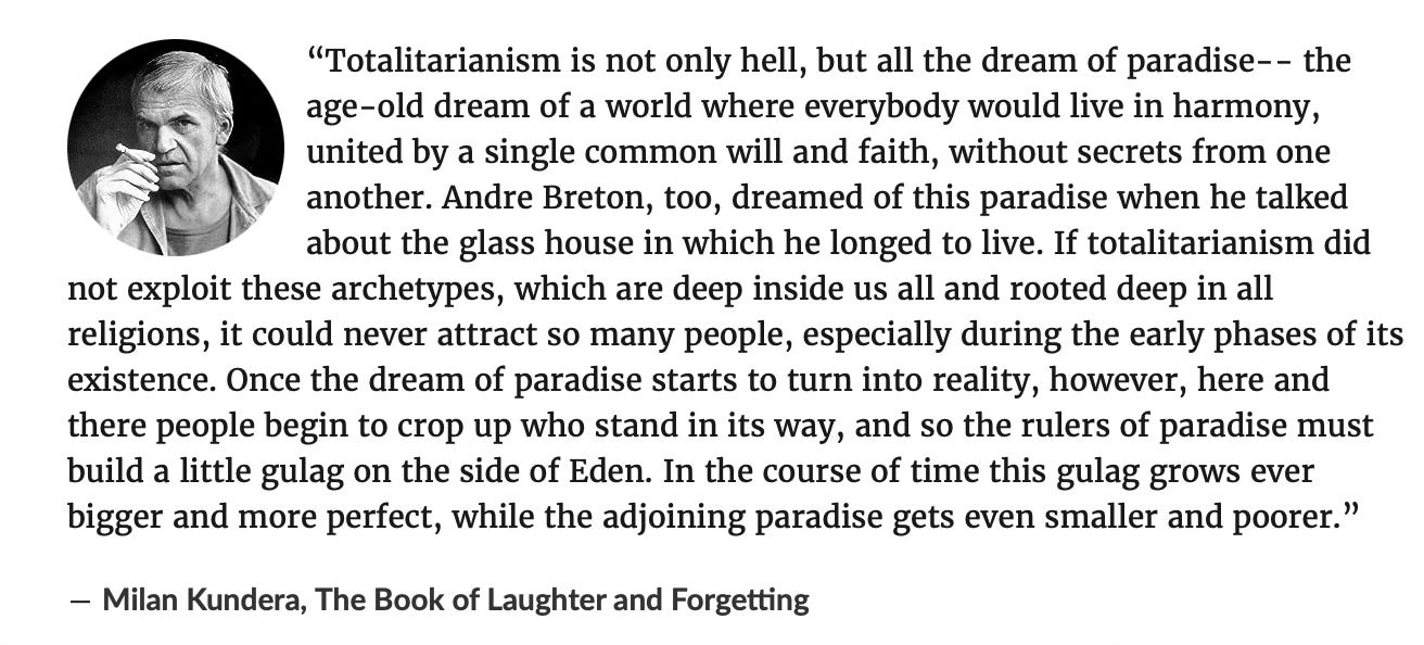 The ruling class seems to believe that they’re fighting a war with Trump and MAGA. But the truth is, they’re at war with reality itself. Utopias can’t last because they demand the people inside them depart from real life to chase an impossible dream. As as Milan Kundera once said: