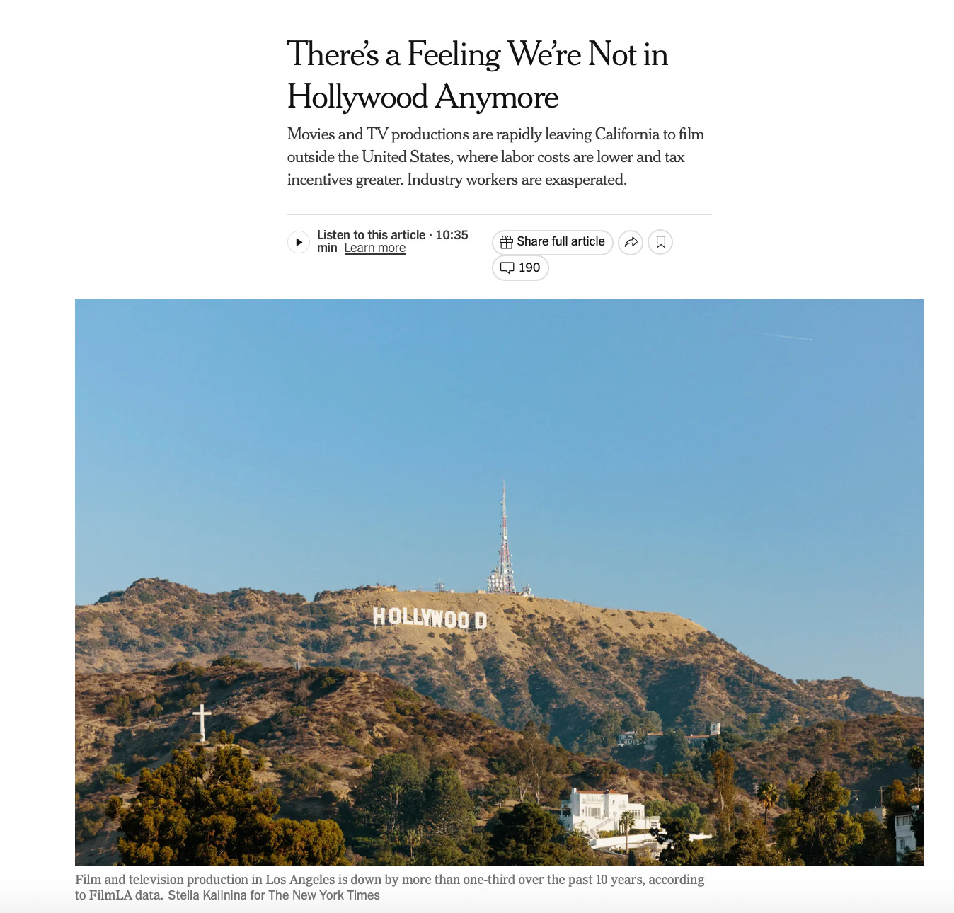 In the past few years, as labor costs have grown after two strikes, producers of reality shows, scrappy indie movies, and blockbuster films have increasingly turned away from Los Angeles to filming locations overseas.