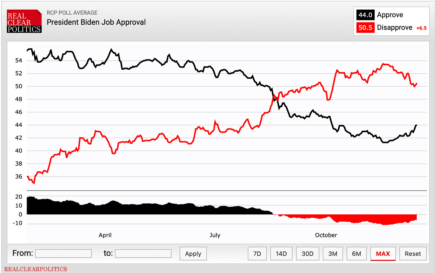Biden’s numbers didn’t really start to drop until August, after the disastrous exit from Afghanistan, where it’s not getting better, it’s getting worse: