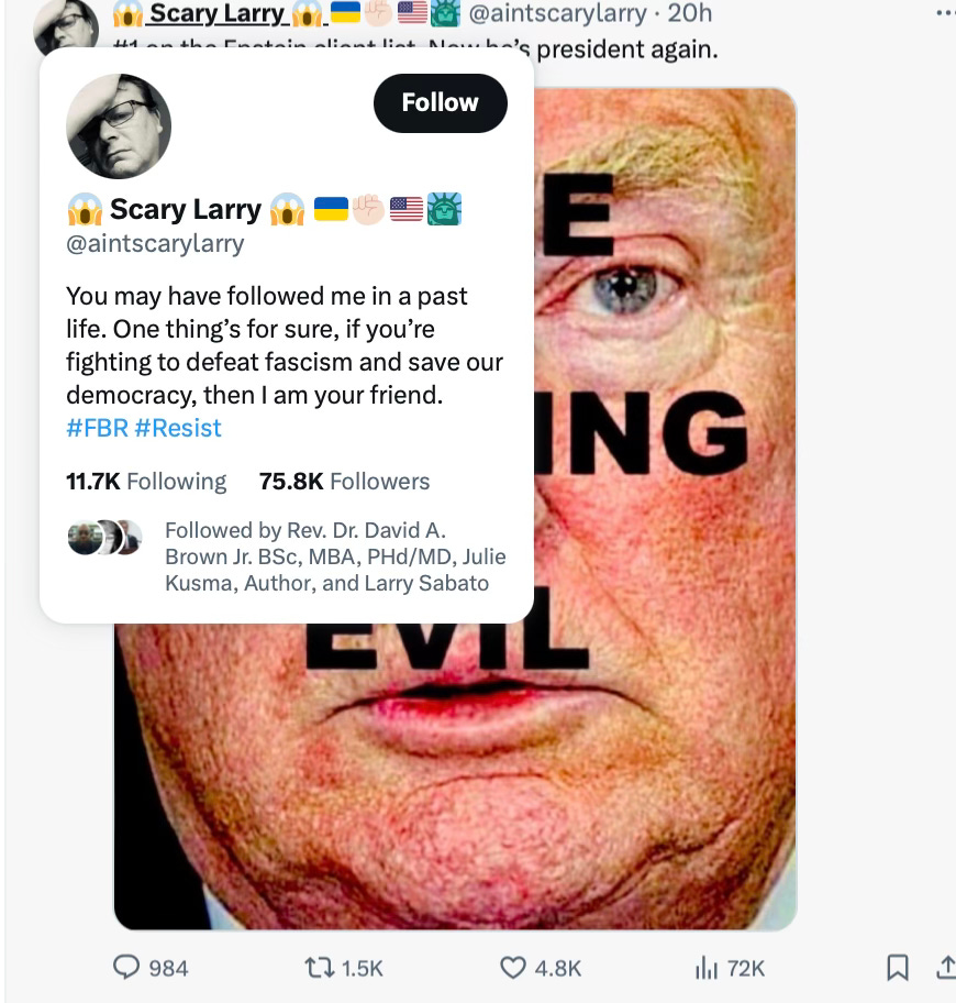Any casual observer would recognize Trump and MAGA in everything he’s describing there—rebels, rule-breakers, high on charisma, low on caring what other people think. In other words, Judd Nelson in The Breakfast Club, who just happens to be like very type of person most on the Left, would call MAGA or “toxic masculinity” or a man with white privilege or an “incel.”