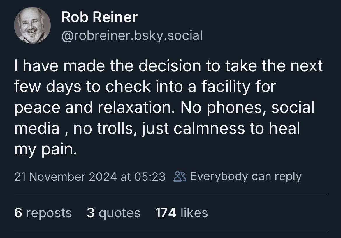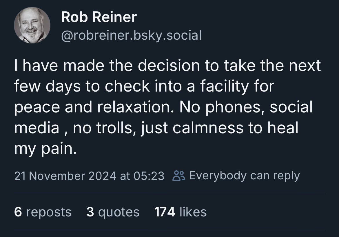 Neil Young pulled his songs from Spotify, and poor Rob Reiner checked into a mental health institution because of the election.