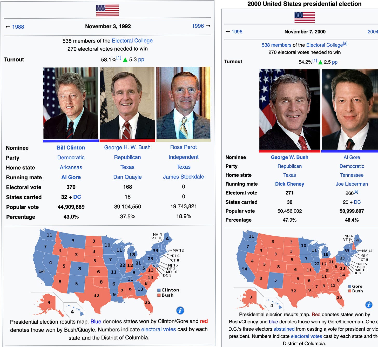 I guess we didn’t stop to consider that Bill Clinton's victory was due to another third-party spoiler named Ross Perot, who had pulled votes from HW Bush, allowing Bill Clinton to pull in a victory.