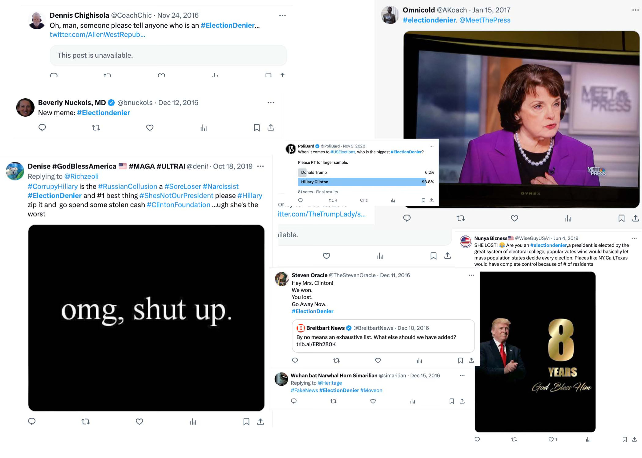 Believe it or not, the hashtag #electiondenier was started by MAGA, not the Democrats as a tool to shame Hillary Clinton supporters for their refusal to accept the results of the 2016 election.