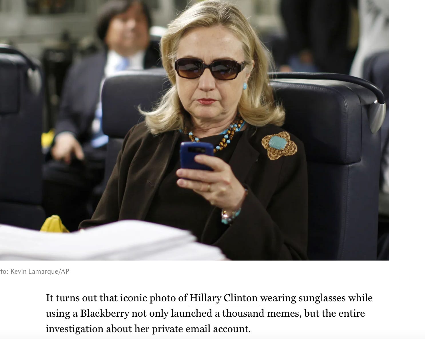 Taken in 2011, this photo by Kevin Lamarque/AP launched a thousand memes and an investigation into Hillary’s private email server. The Queen could not catch a break.