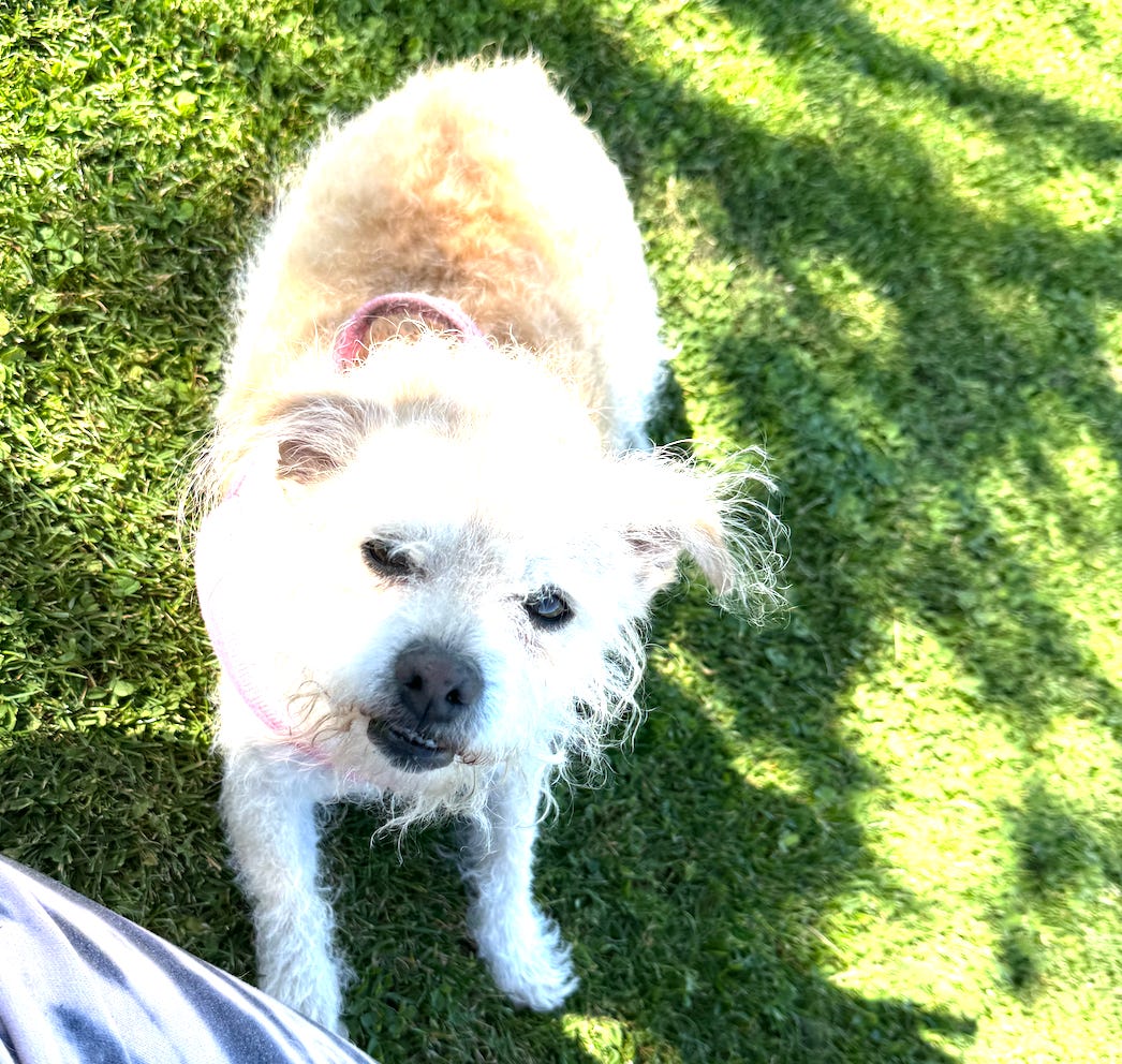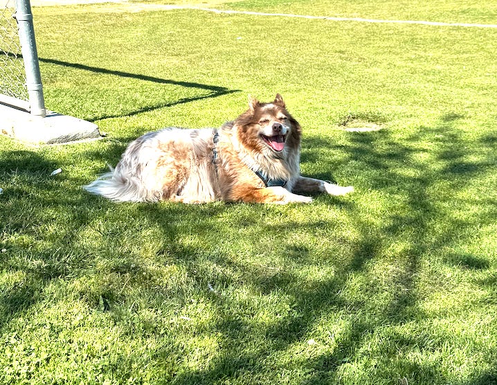 Jack is quite unusual-looking. He’s spotted like an Aussie, has pointy ears like a Healer, and has very rare green eyes like me. I sent in his DNA, which was probably a scam, and it came back equal parts Border Collie, Beagle, Great Dane, and Dalmatian.