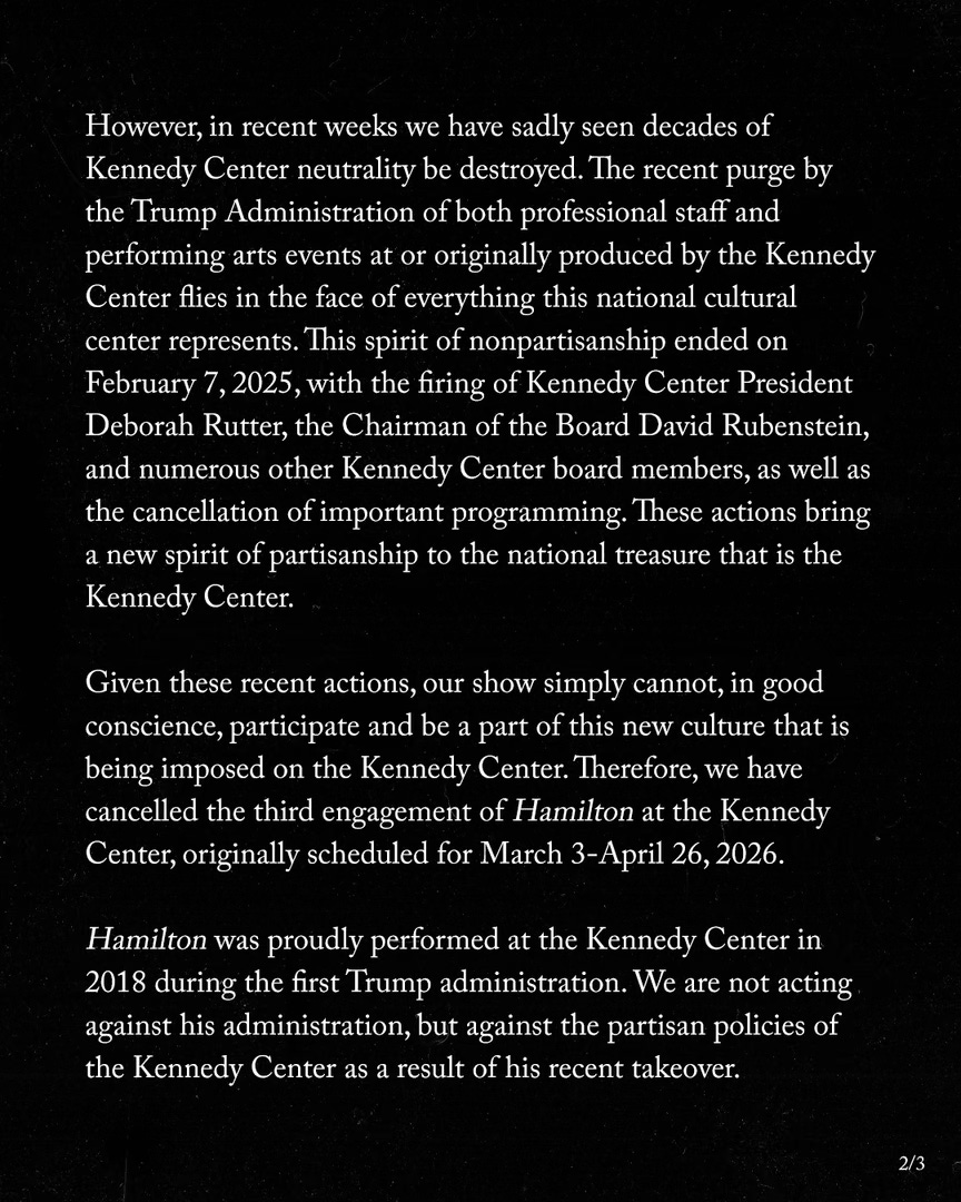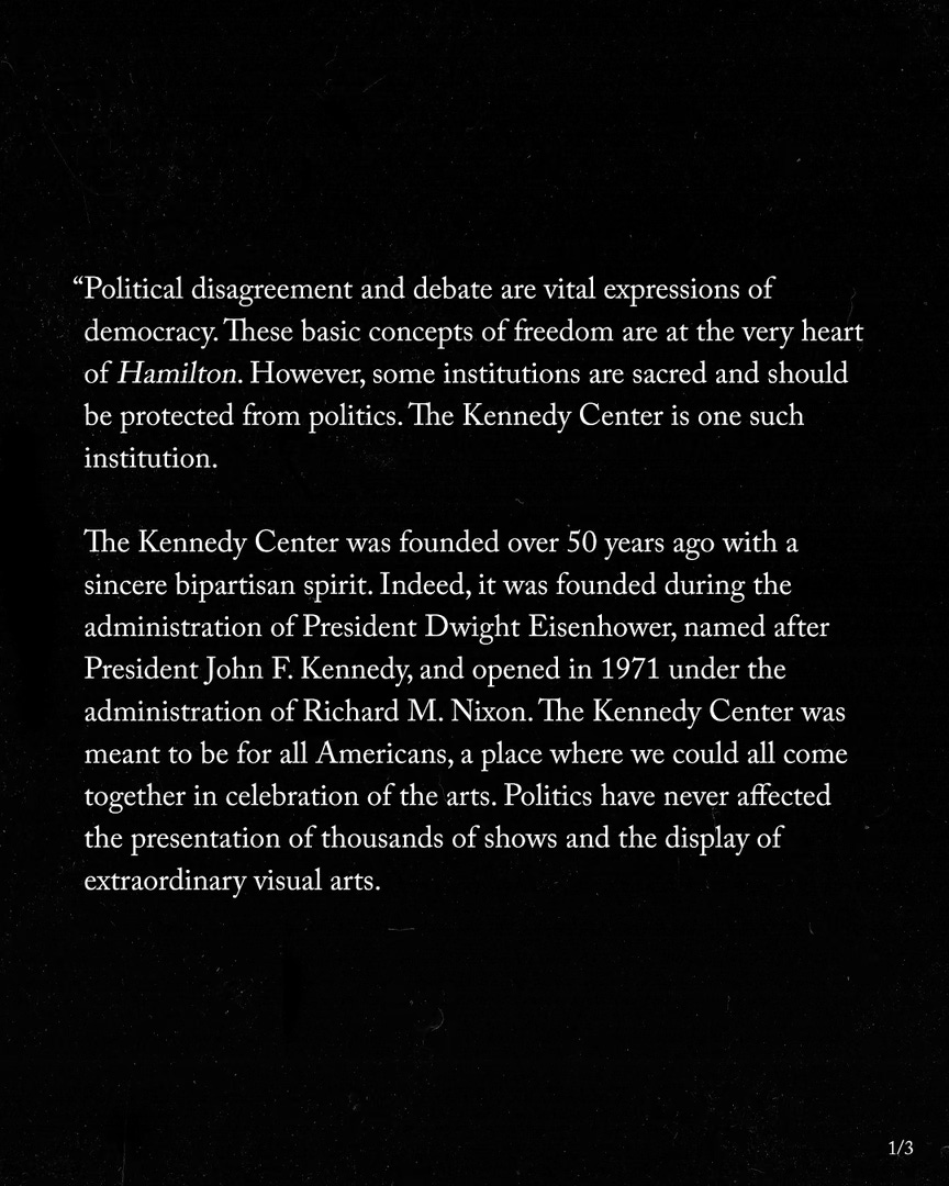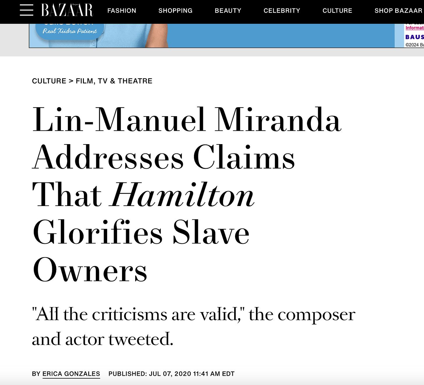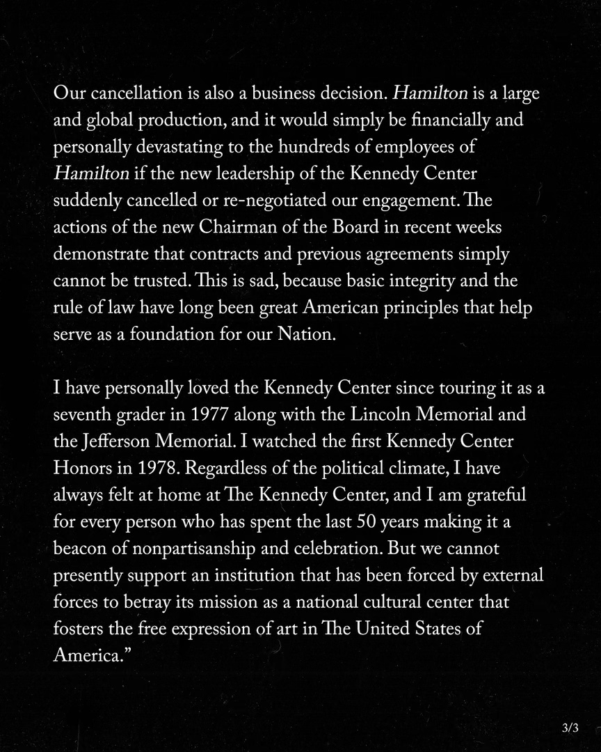 But now I can. All it took was this statement by the producer of Hamilton, Jeffrey Seller, wherein the play cancels itself, hiding behind the usual gaslighting and rationalizations so common on the left: