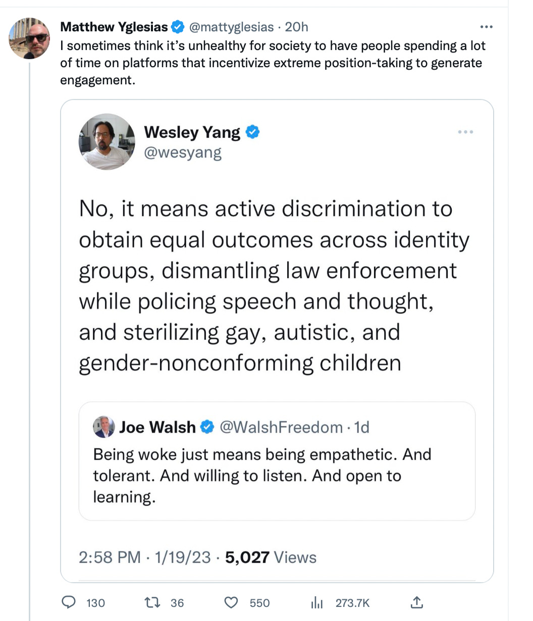 Joe Walsh, I think, has become addicted to the attention he gets on Twitter from the Left and has lost the plot. Nice guy, though, I think.