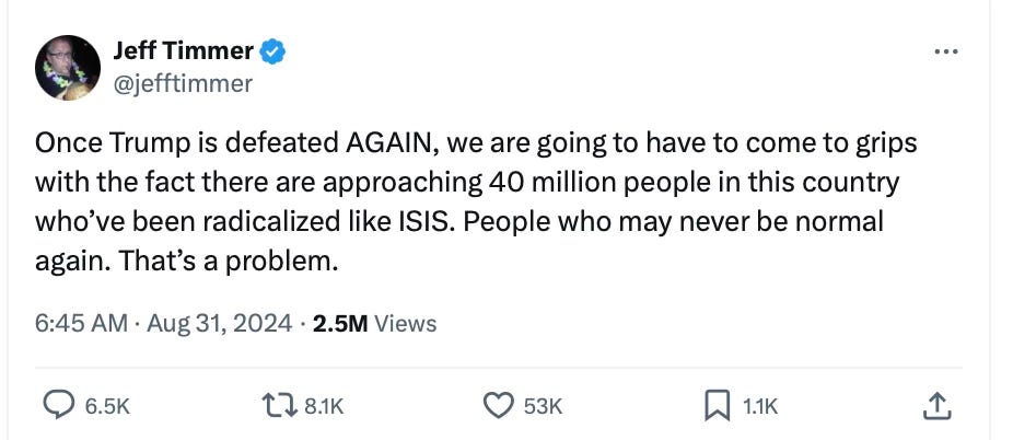Jeff Timmer works with the Lincoln Project. Does anyone think he will reap the same kind of whirlwind as Tucker Carlson will? Not a chance.
