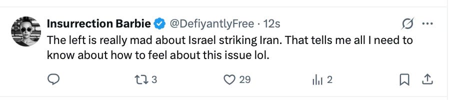 Israel strikes Iran. Lots of news happening, but this seems to be the biggest story on a day of very big stories.