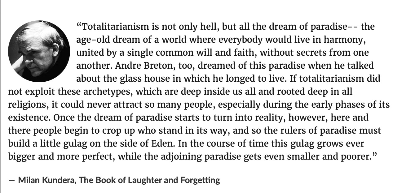 It’s like that Milan Kundera quote about Totalitarianism: