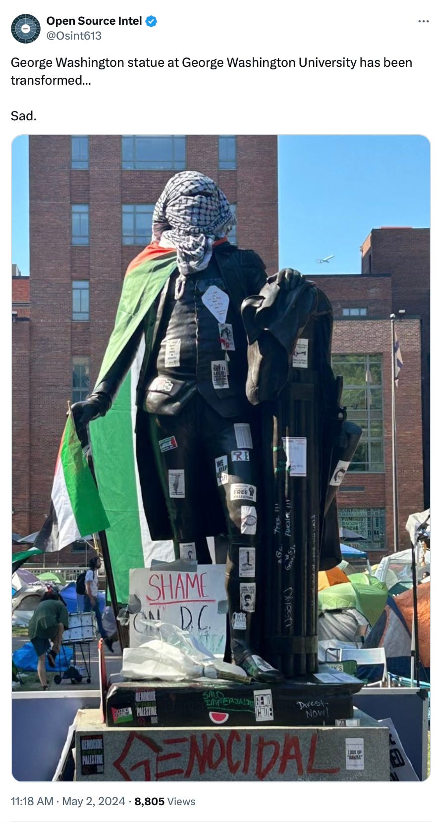 There is no saving the Left. There is only saving the country from them. Here is a statue of George Washington defaced, and sadly, it’s hardly the first time in recent years.