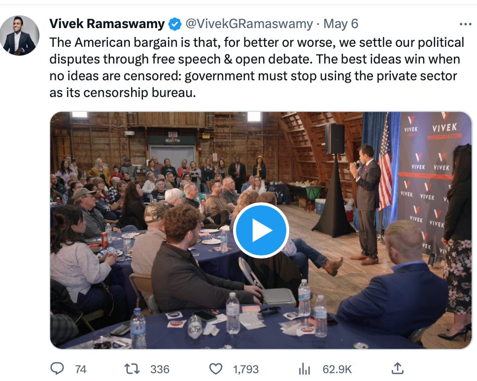 Dissent is getting much louder, thanks to Elon Musk buying Twitter and unclogging one of our main arteries. Vivek Ramaswamy and Kennedy are speaking out in ways the American people crave.