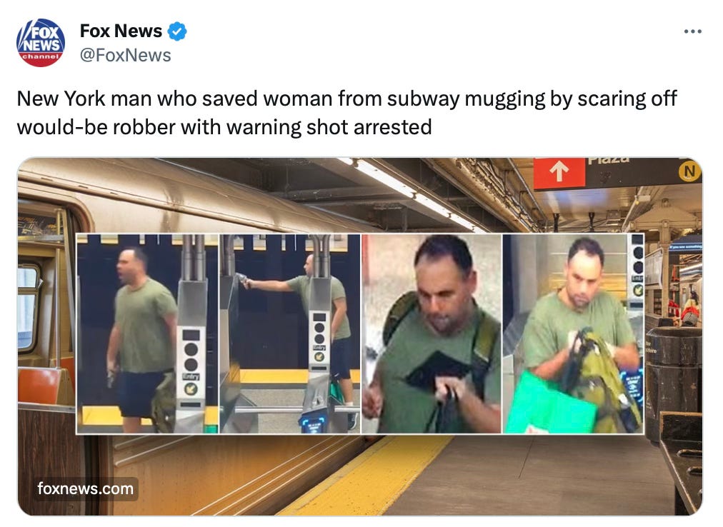 Meanwhile back in New York, a man fires a warning shot and scares off a mugger. I’m sure this will go over well with the NYPD.